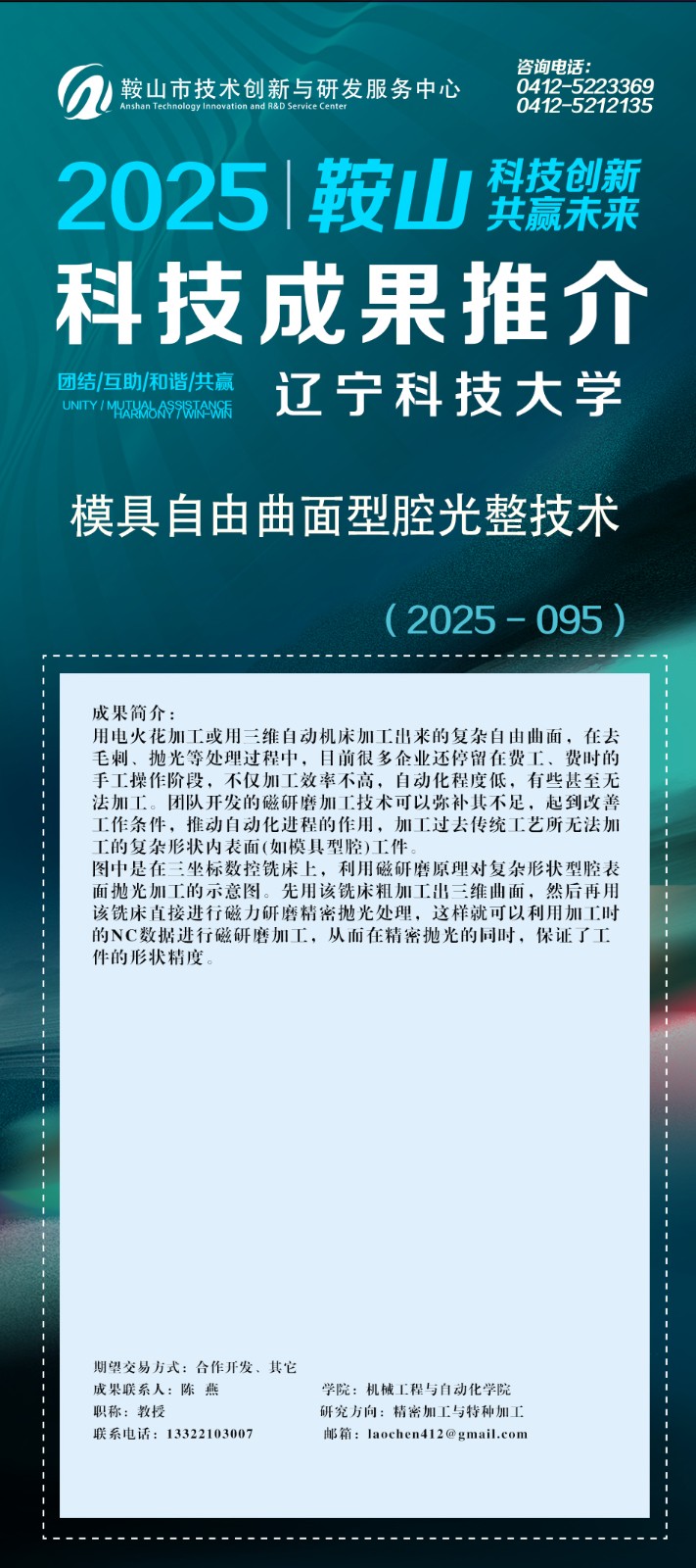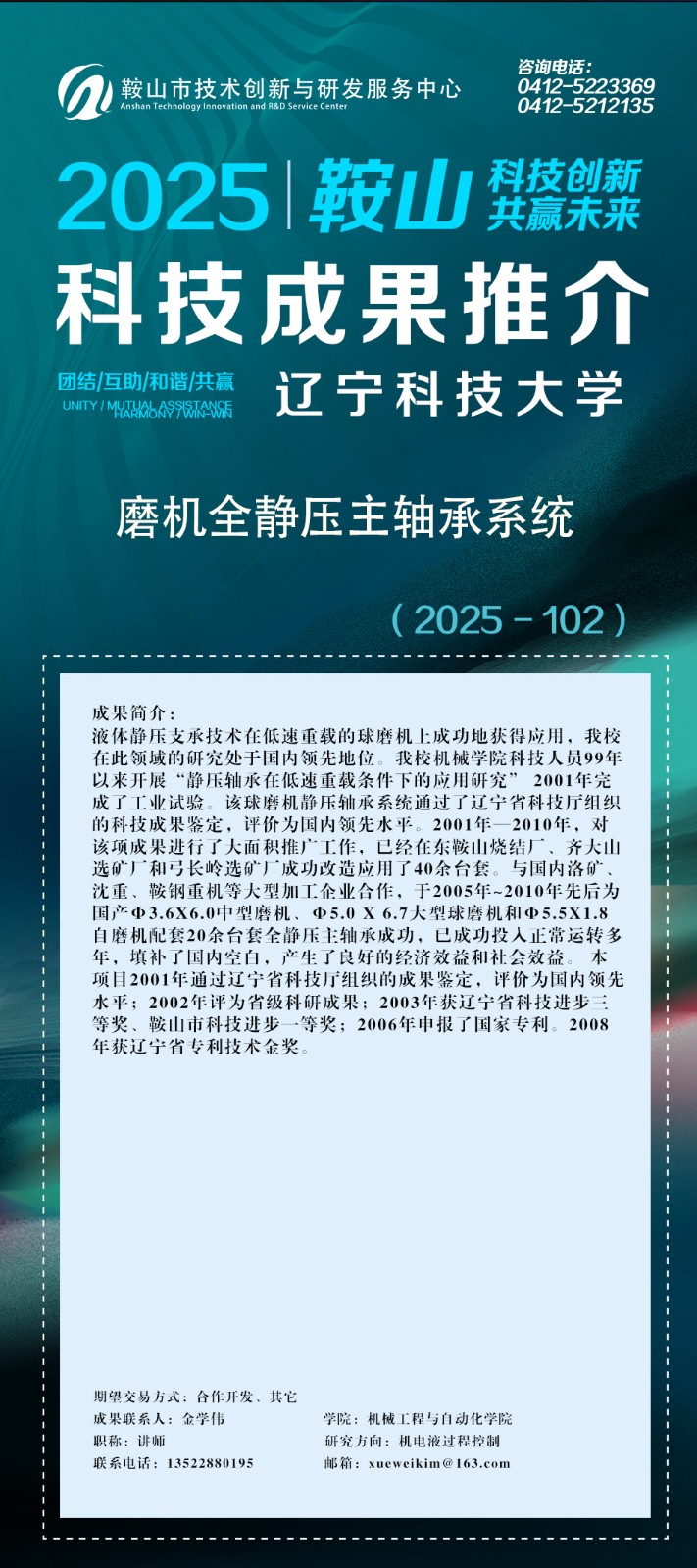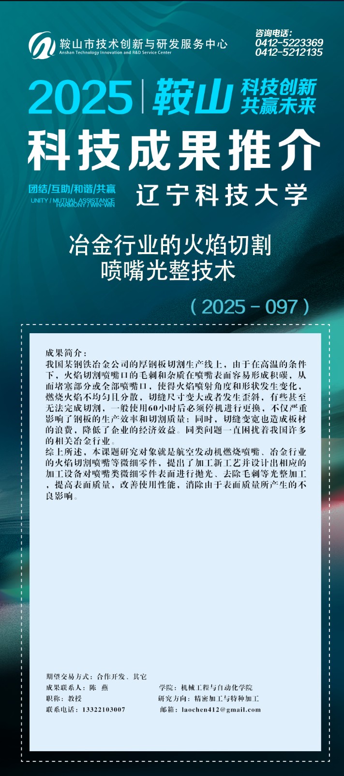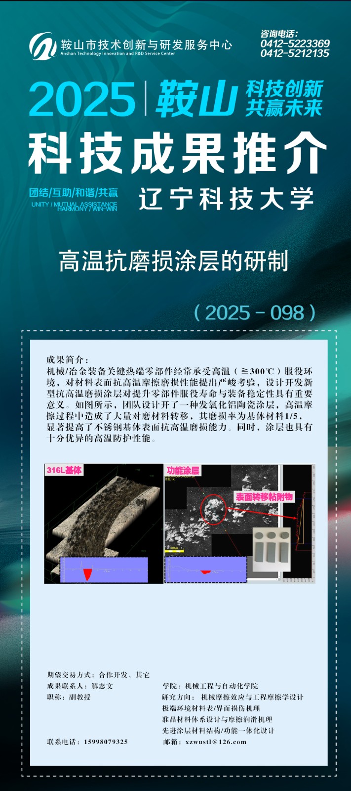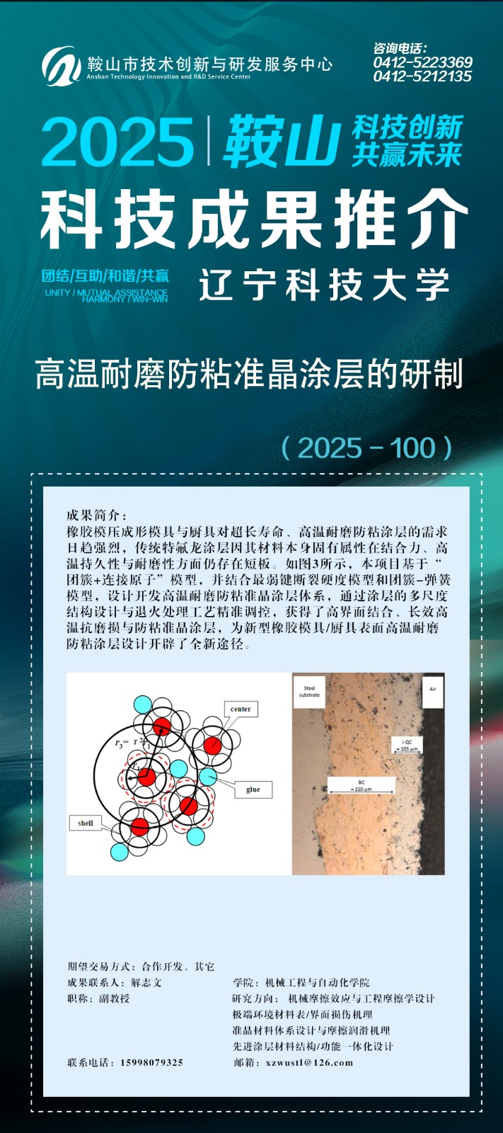 由鞍山市科技局主办,鞍山市技术创新与研发服务中心承办的鞍山科技成果网上推介(2025年第十二期)辽宁科技大学专场正式上线。