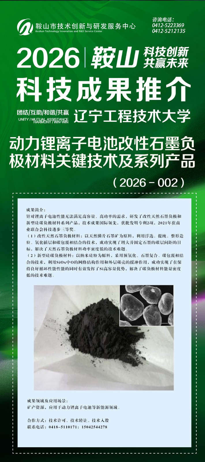 由鞍山市科技局主办,鞍山市技术创新与研发服务中心承办的鞍山科技成果网上推介(2026年第一期)辽宁工程技术大学专场正式上线。
